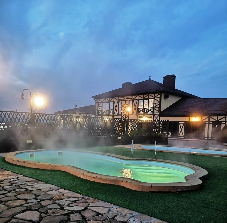 В предгорье Краснодарского края, в п. Мостовской расположены десять баз отдыха с горячими открытыми уличными бассейнами. Сразу надо понять, что это не дикие гейзеры в каменных глыбах, это бассейны, берущие воду со скважин глубиной до 2 километров.